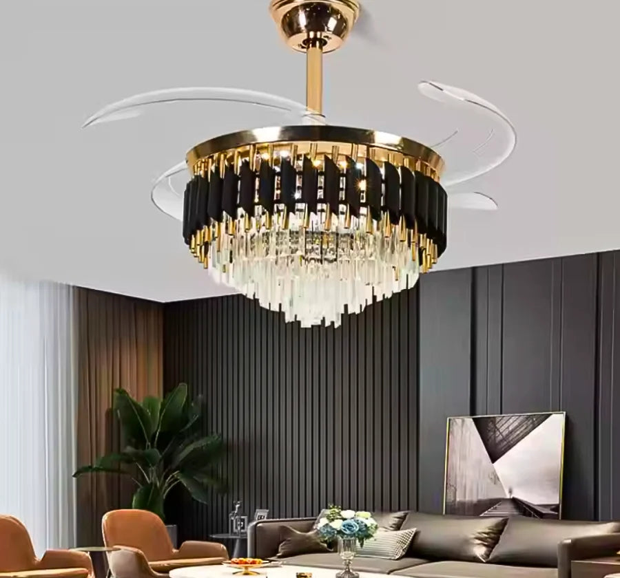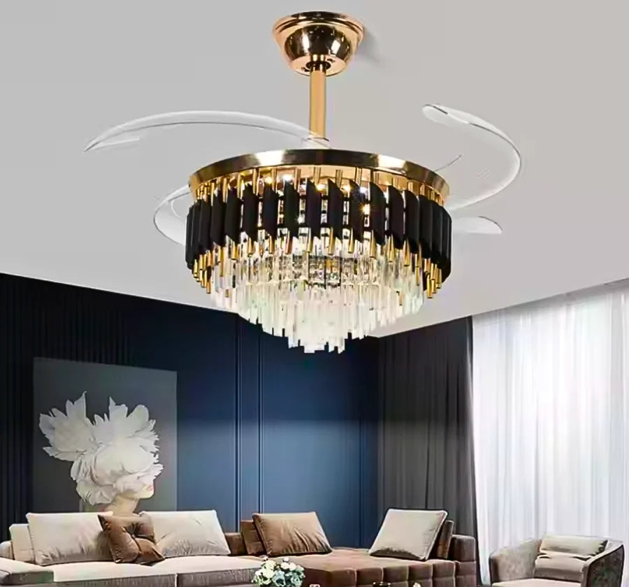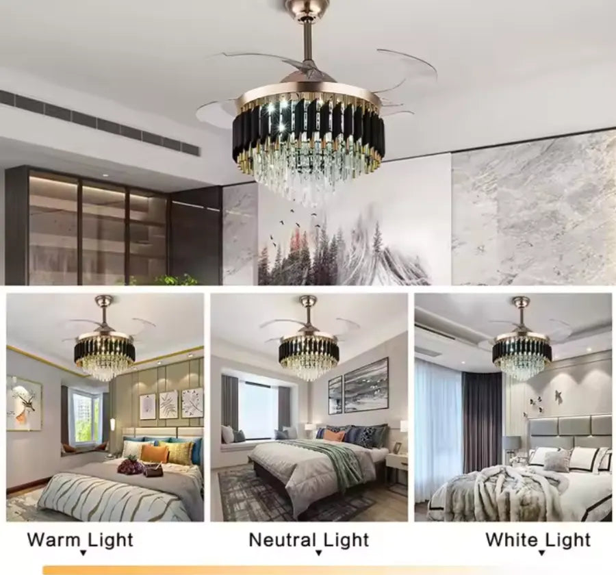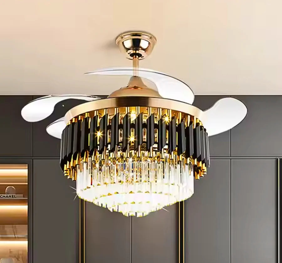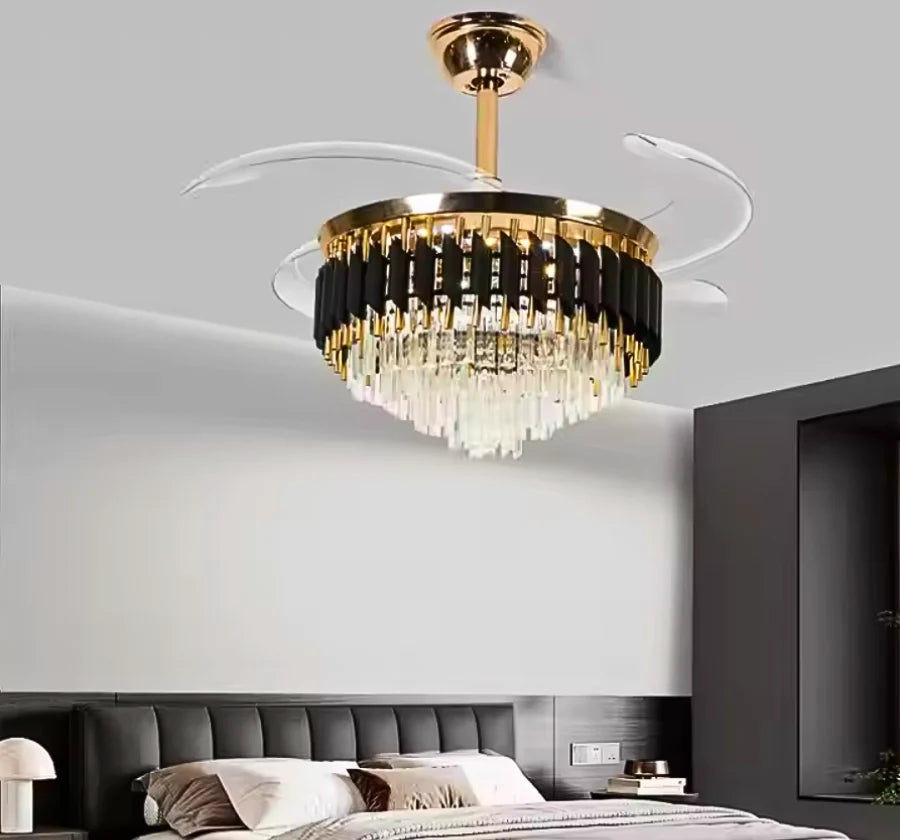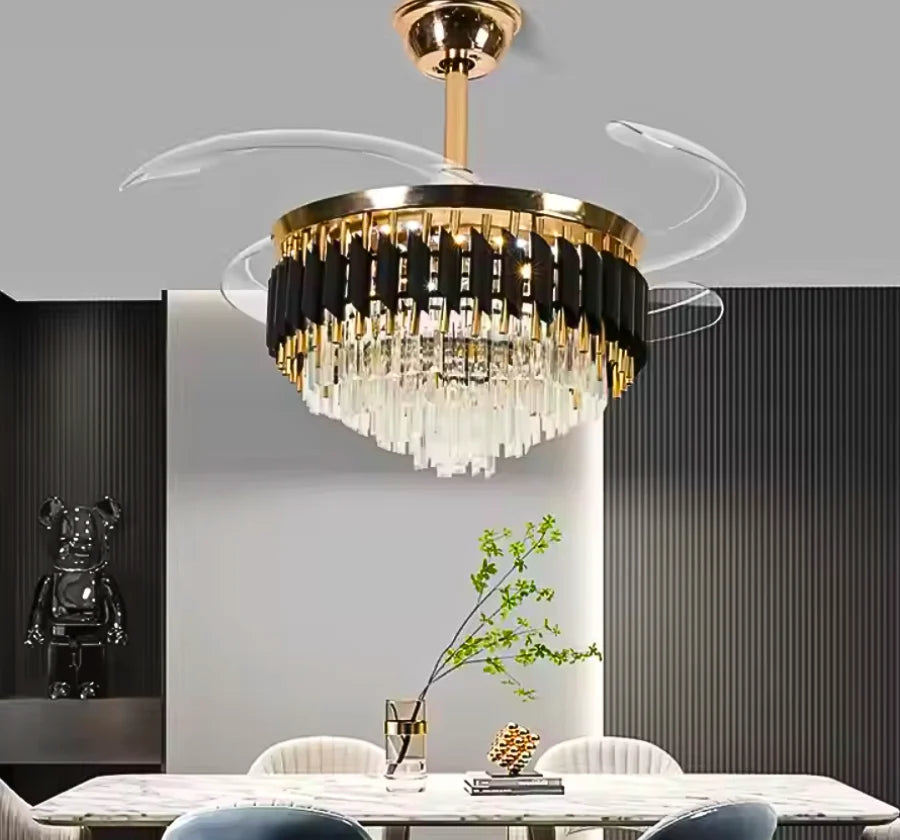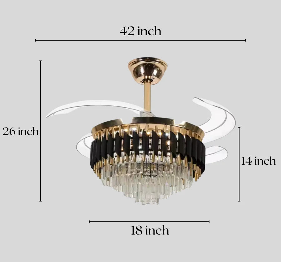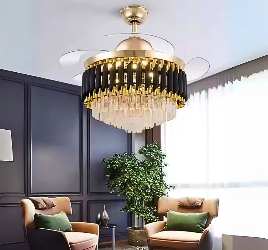 Designed for those who appreciate grandeur, this masterpiece combines the dazzling beauty of a crystal chandelier with the practicality of a powerful ceiling fan, offering both glamour and comfort in one stunning centerpiece.