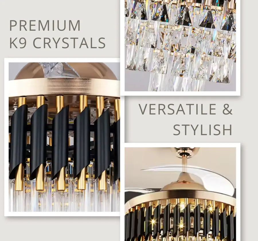 Elevate your interiors with the spectacular Bellagio Chandelier Ceiling Fan — a brilliant fusion of luxury lighting and high-performance cooling.