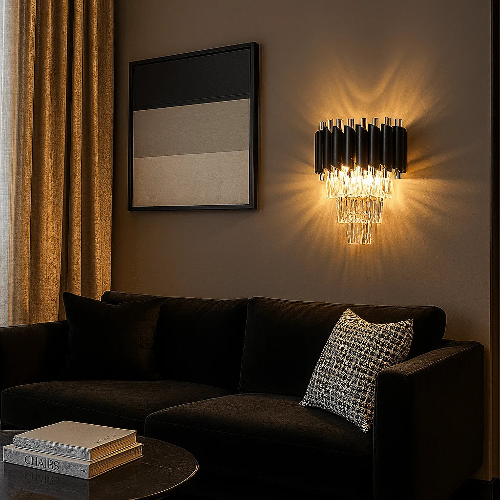 Imperion Crystal Luxe Wall Light – Black Gold Finish with Tiered Glass Detailing