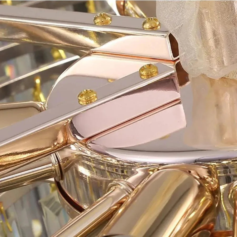 Suspended by a matching gold-wrapped chain and supported by a mirror-polished canopy, Lumleaf transforms dining rooms, grand foyers, or luxury suites into sophisticated sanctuaries of light and nature-inspired glamour.