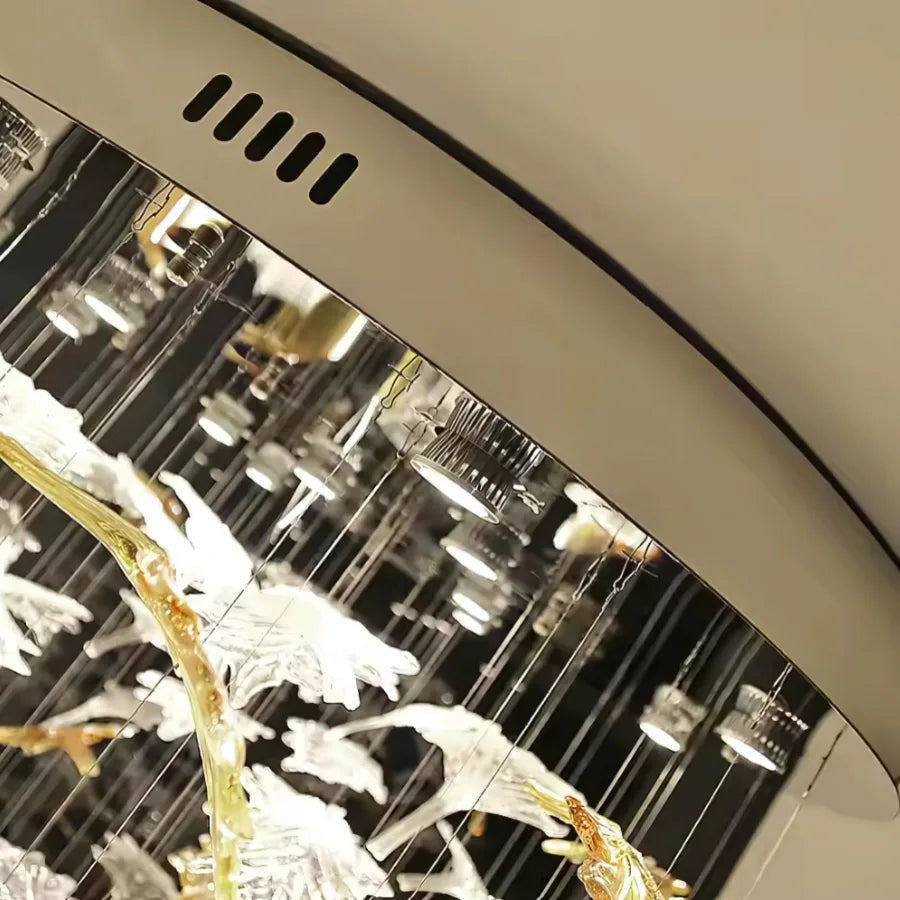 Let the Serene Chandelier transform soaring interiors into enchanted forests of light—hundreds of crystal and gold leaves drifting in mid-air, bathing foyers, staircases, and lobbies in a mesmerizing glow that whispers luxury, artistry, and timeless wonder.