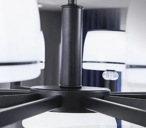 Transform your home with this captivating 12-light modern chandelier. Featuring a sleek black frame and elegantly frosted glass shades, this lighting fixture is designed to add a touch of sophistication to any room.