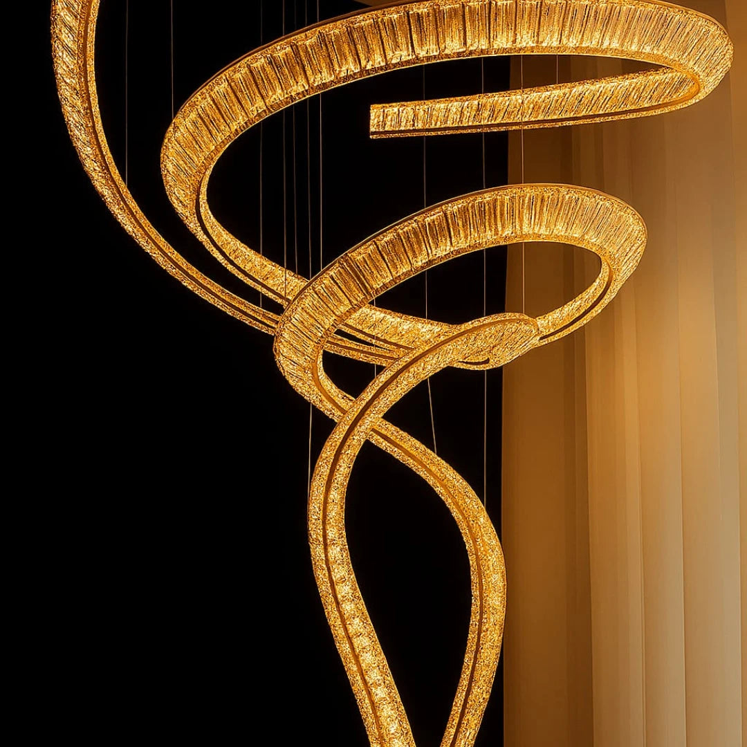 With a cascade of handcrafted crystal elements set in graceful, sweeping loops, Twilight Cascade creates a sense of motion, drama, and grandeur — ideal for modern villas, duplex apartments, and high-ceilinged lounges.