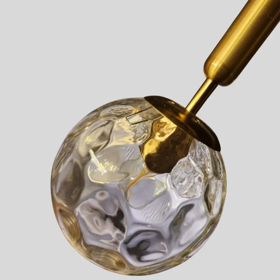 The VERTUNA Hanging Light blends elegant gold accents with a textured glass globe, creating a warm, modern glow perfect for bedrooms, reading corners, or stylish living spaces.